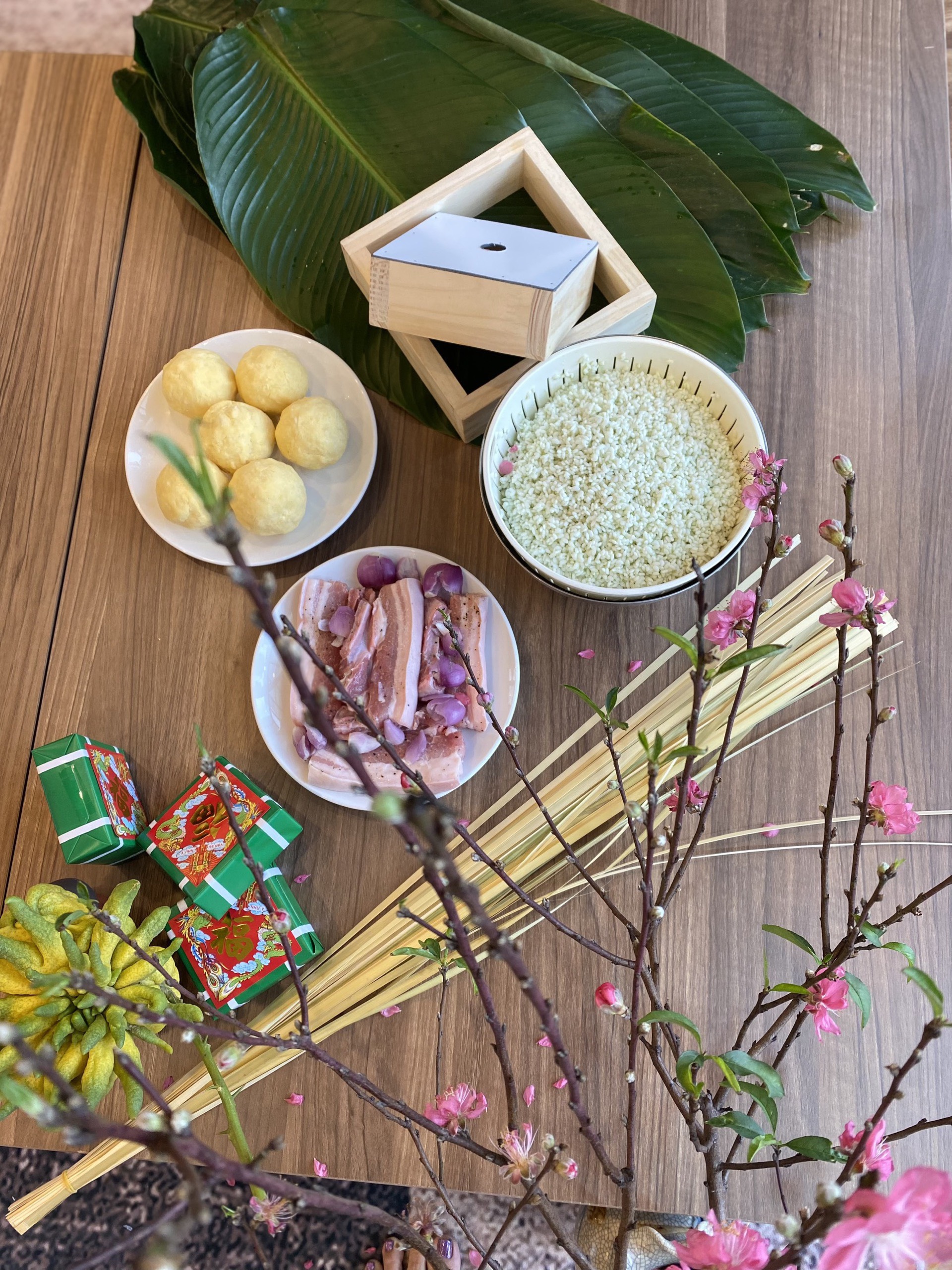 Hình ảnh HS gói bánh chưng ở nhà trong Lễ hội Xuân yêu thương