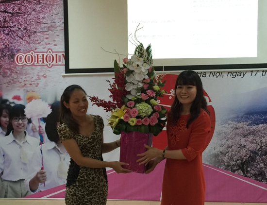 Kết thúc buổi tư vấn, cô giáo Hiệu trưởng Nguyễn Thị Nhiếp đã trao tặng cô giáo Trần Thị Mạnh Linh