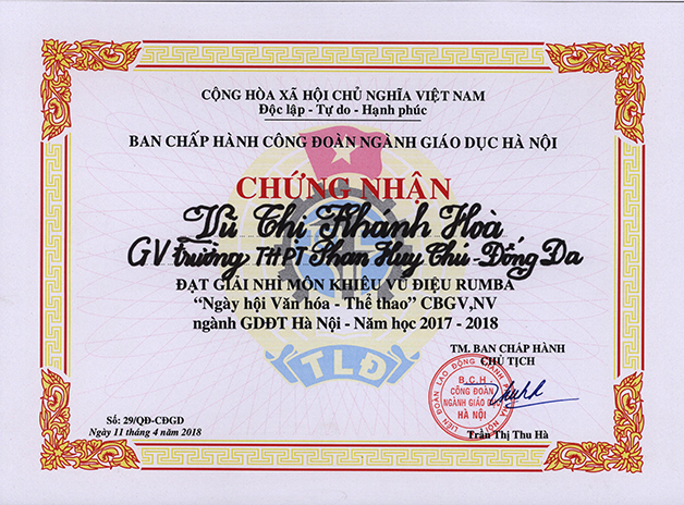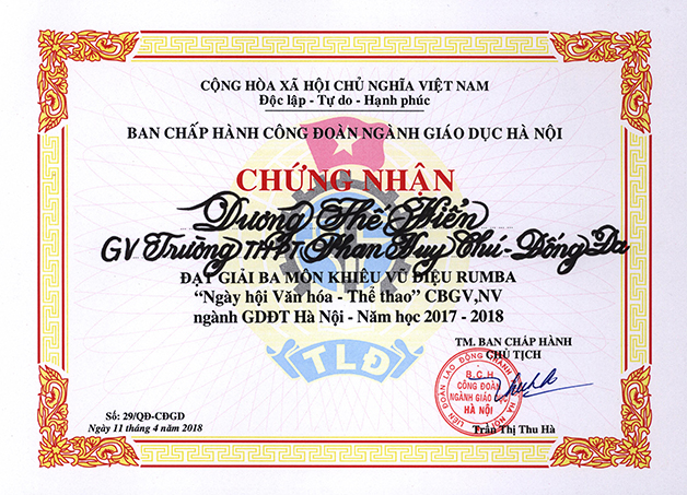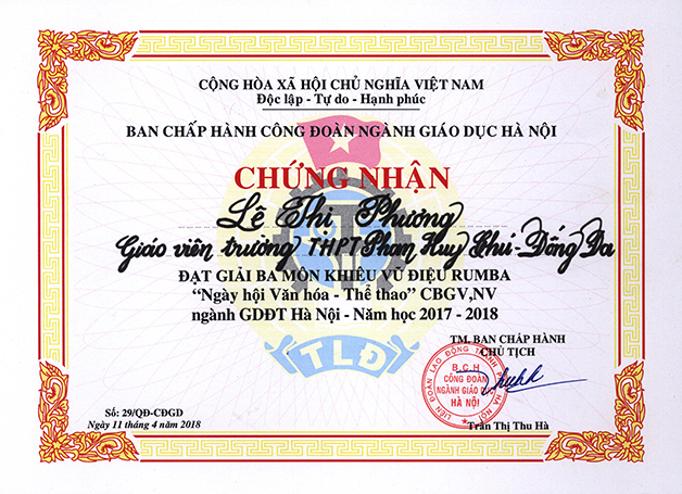 Ngày thường các thầy cô kính yêu ấy say sưa trên bục giảng, trong “Ngày hội Văn hóa – Thể thao” của cán bộ giáo viên, nhân viên ngành Giáo dục và Đào tạo Hà Nội, bốn thầy cô giáo trường THPT Phan Huy Chú – Đống Đa đã đứng trên bục vinh danh Giải Nhì – được nhận Huy chương Bạc và Giải Ba – được nhận huy Chương Đồng.
