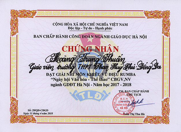 Thầy giáo Hoàng Trung Thuấn (môn Vật Lý) và cô giáo Vũ Thị Khánh Hòa (môn Ngữ Văn) đã được trao Giải Nhì với số điểm khá cao trong tiết mục dự thi rất thành công. Được biết, nhạc thi của vũ điệu Rumba này hoàn toàn không được tập trước. Khi thi chung kết, Ban Tổ chức bất ngờ đưa ra ngay lúc bắt đầu chấm thi. Điều đó chứng tỏ bản lĩnh cùng tài nắm vững bước nhảy của thầy, cô.