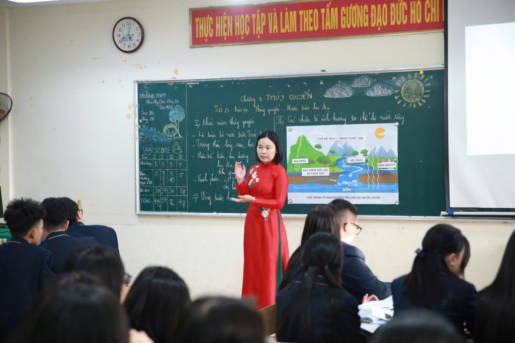 • Ở môn Địa lí, cô giáo Nguyễn Thị Châu Loan mang đến những kiến thức thời sự, khoa học, tầm quan trọng cũng như những thách thức từ “Thủy quyển”. Bài dạy còn khơi gợi ý thức bảo vệ môi trường sống và trách nhiệm công dân trong mỗi học sinh. Nhất là trong những ngày đồng bào miền Trung thân thương đã và đang phải gánh chịu những ảnh hưởng nặng nề của thiên tai, lũ lụt.