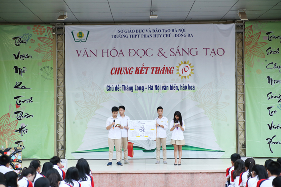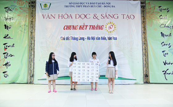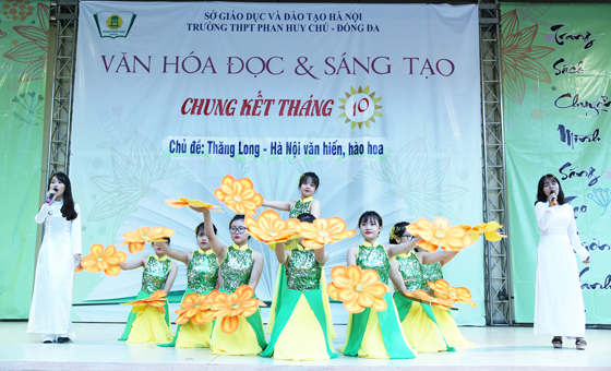 Tiếp theo chương trình, toàn trường được thưởng thức giọng hát của hai bạn Khánh Ly và Hoàng Trang đến từ lớp 12C2 và nhóm múa 12C1, 12C2 qua ca khúc Hà Nội 12 mùa hoa.