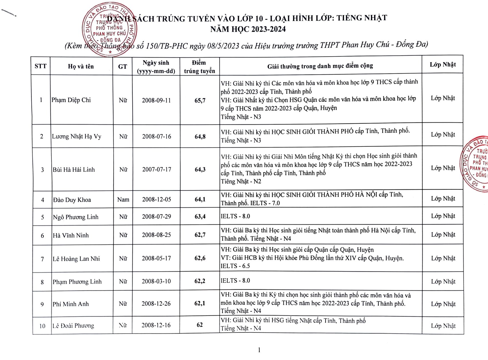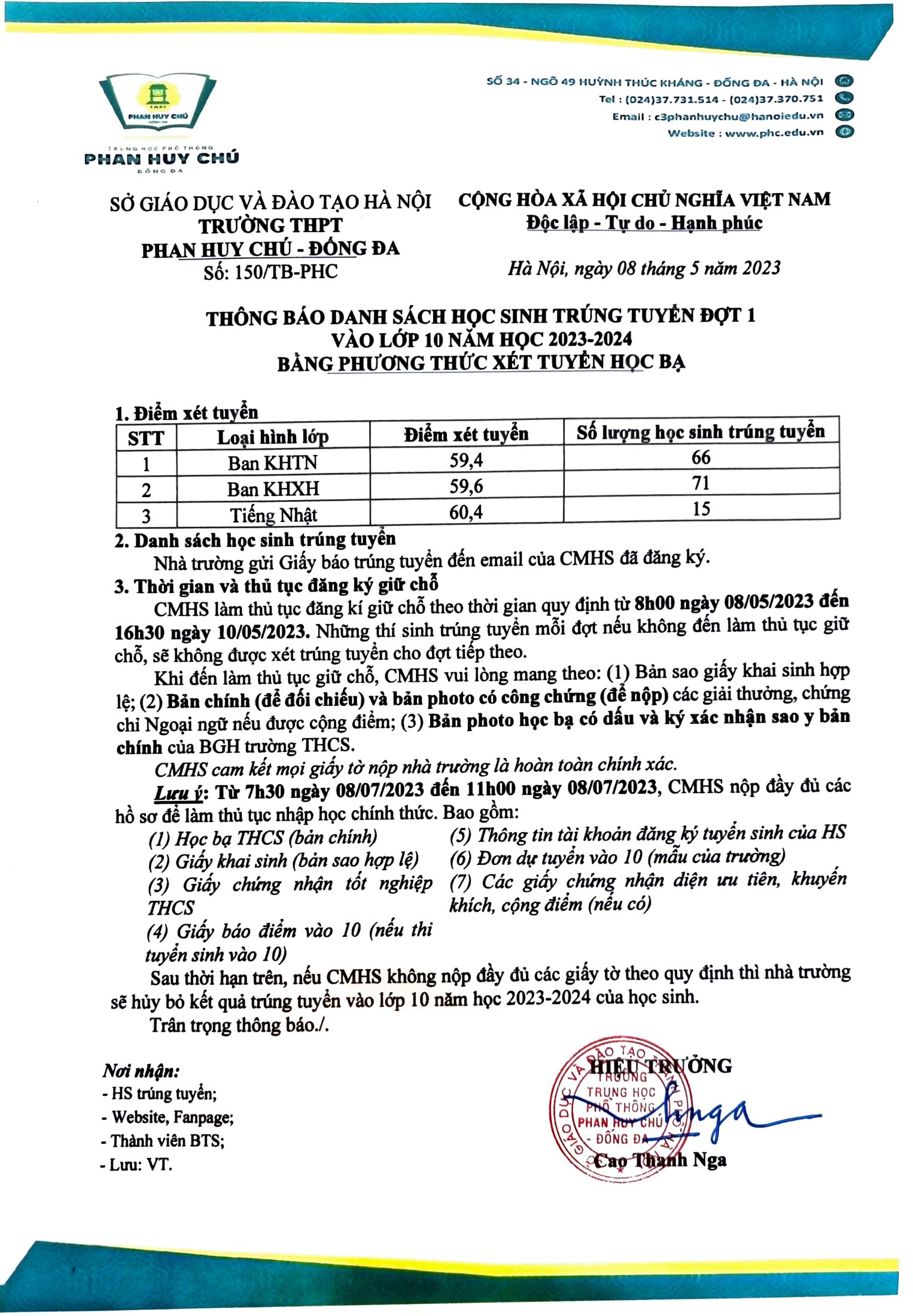 Tuyển sinhDANH SÁCH TRÚNG TUYỂN VÀO LỚP 10 NĂM HỌC 2023 – 2024 Đã đăng trên 08/05/202305/08/2025 bởi admin admin THÔNG BÁO VỀ VIỆC PHÁT HÀNH HỒ SƠ TUYỂN SINH LỚP 10 Thông báo dừng xét tuyển học bạ vào lớp 10 năm học 2023 – 2024