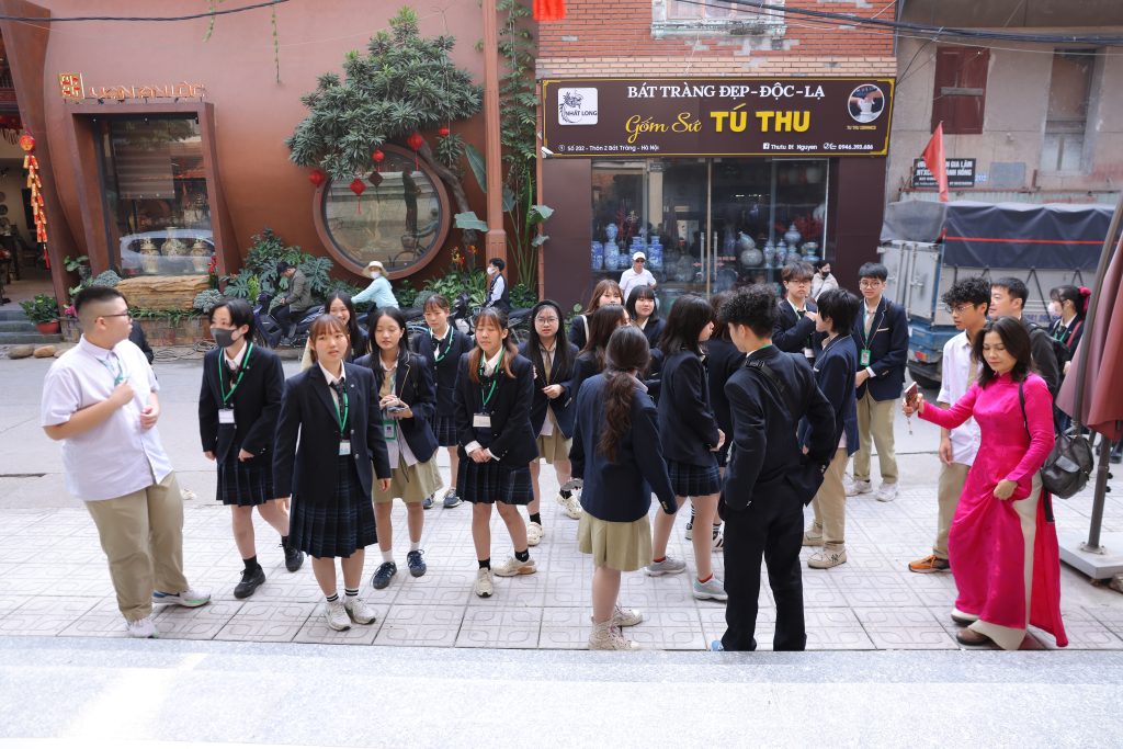 Học sinh hai trường đã cùng nhau có những trải nghiệm đáng nhớ tại làng nghề truyền thống Bát Tràng. Các bạn đã cùng nghe nghệ nhân chia sẻ, hướng dẫn, cùng thực hành làm sản phẩm gốm. Trải nghiệm ở làng nghề Bát Tràng là nội dung học tập của học sinh trường THPT Phan Huy Chú – Đống Đa (từ khi học lớp 10), nên lần này, các bạn đã có trải nghiệm để cùng thực hiện với các vị khách quý đến từ Nhật Bản. Các vị khách là học sinh Trường THPT Sumiyoshi (Osaka) đã vô cùng thích thú khi được tham gia các hoạt động ở làng nghề Bát Tràng.