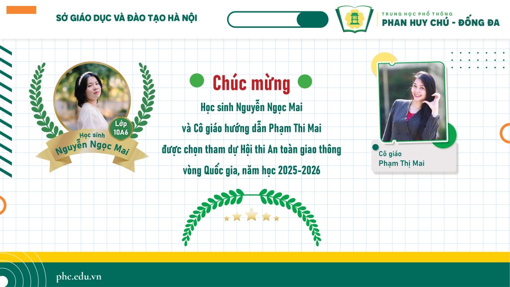 Niềm vui đầu năm 2026 trong buổi chào cờ là phần tuyên dương, khen thưởng học sinh đạt thành tích xuất sắc. Thầy trò nhà trường đã chúc mừng em Nguyễn Ngọc Mai, lớp 10A6 và cô giáo Phạm Thị Mai – người tận tình hướng dẫn học sinh Ngọc Mai đem về kết quả tốt đẹp. Bài dự thi Hội thi An toàn giao thông (ATGT) năm học 2025–2026 của Ngọc Mai được lựa chọn tham gia Vòng Quốc gia.