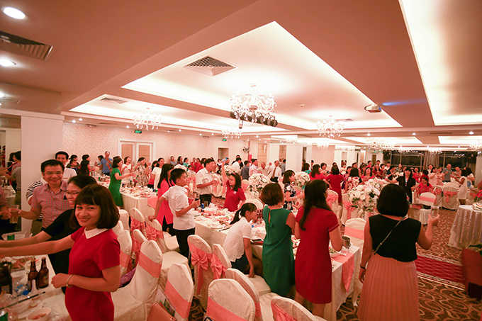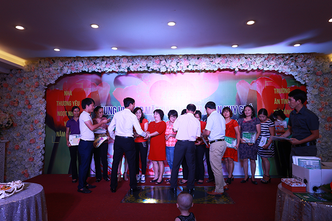 Các cô trong tổ văn phòng và phu nhân các đồng chí nam ở Tổ văn phòng đón nhận những tình cảm yêu quý từ các bậc mày râu của trường.