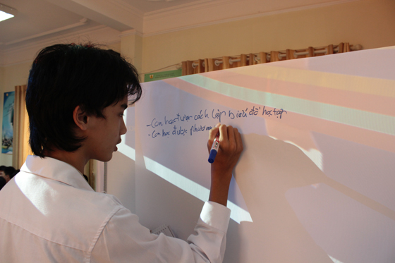 Học sinh tham gia viết những điều thu hoạch đã học được trong buổi tư vấn.