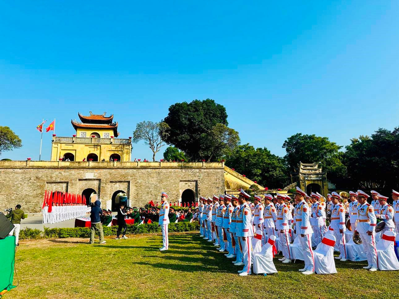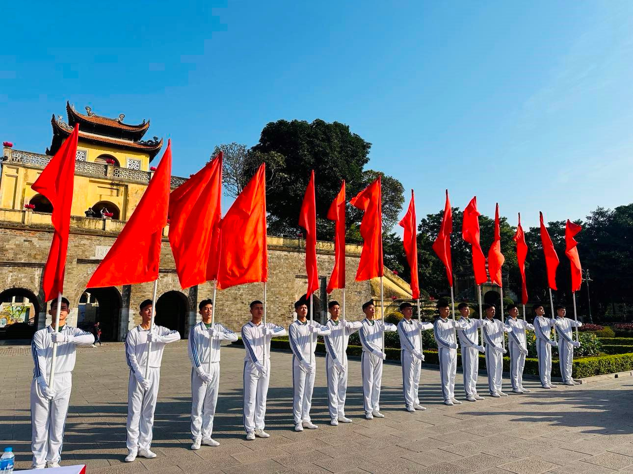 Buổi lễ chào cờ diễn ra tại sân Đoan Môn có sự tham gia của Hội Cựu chiến binh quận Ba Đình, Hội Liên hiệp phụ nữ quận Ba Đình cùng học sinh đến từ các trường: Tiểu học Văn Chương; Tiểu học Phan Chu Trinh; Tiểu học, THCS &THPT Ngôi Sao Hà Nội – Hoàng Mai; THCS Nguyễn Tri Phương; THPT Phan Huy Chú – Đống Đa và Đại học Thủ đô Hà Nội.