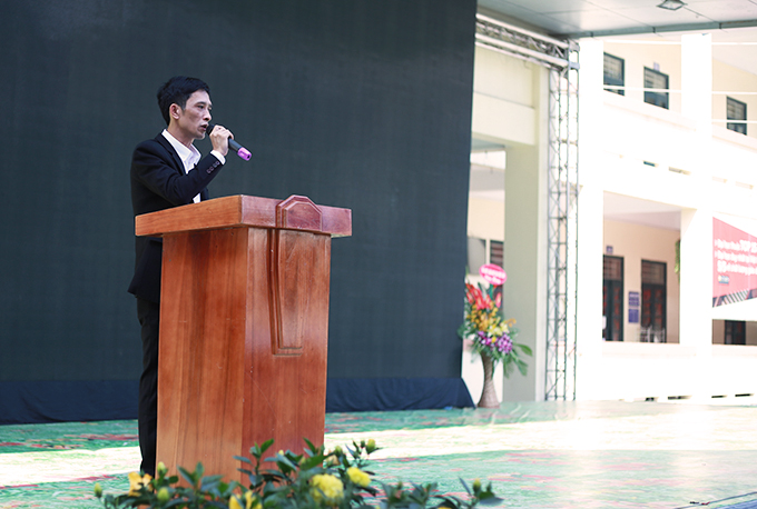 Thầy giáo Hiệu trưởng Hà Xuân Nhâm phát biểu những nhận định cơ bản về năm học 2016 – 2017