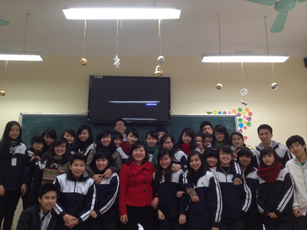 Huyền Trang cùng cô giáo chủ nhiệm và tập thể 12D1