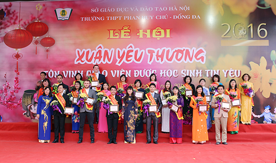 Xuân yêu thương là ngày hội lớn được THPT Phan Huy Chú duy trì, tổ chức hàng năm vào mỗi dịp Xuân về. Đây cũng là dịp để học sinh nhà trường bày tỏ tình cảm, tri ân, tôn vinh các thầy cô giáo và qua đây cũng giúp các em hiểu được ý nghĩa văn hóa ngày Tết cổ truyền của dân tộc. Năm nay, lần đầu tiên nhà trường lựa chọn nhà giáo tiêu biểu nhất để trao giải Cống hiến, cô giáo Nguyễn Kim Anh đã vinh dự nhận được giải thưởng này.