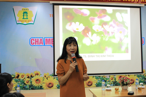 Phần sau của buổi họp Hội đồng nhà trường, các thầy cô giáo còn được làm học trò khi đón nhận những trao đổi thú vị từ Phó giáo sư, Tiến sĩ Tâm lý giáo dục Đinh Thị Kim Thoa. Sự học là việc của cả đời người, và những người làm thầy muốn giỏi nghề cũng cần là những trò tích cực nhất.