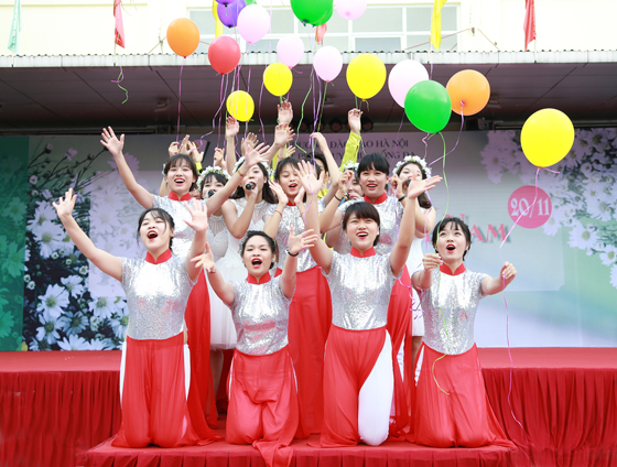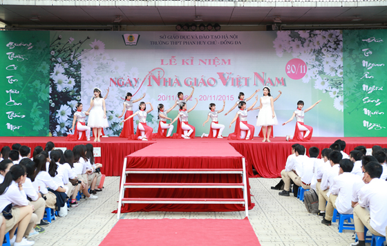 Tiết mục múa của khối 11 thể hiện lòng biết ơn vô bờ với các thầy, cô giáo