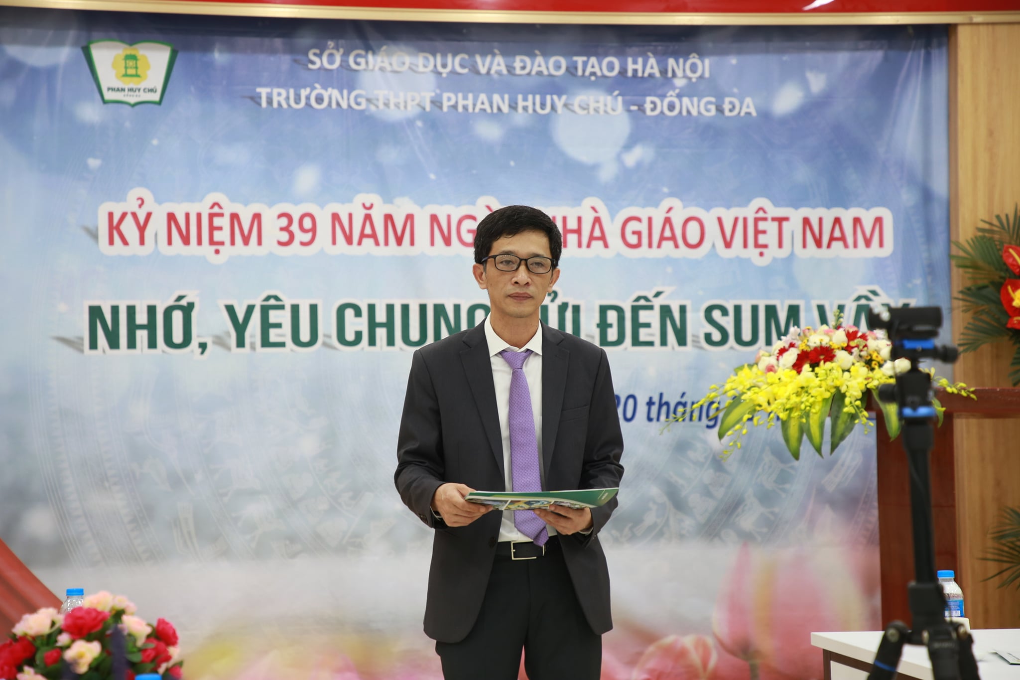 Trước đây, chúng ta chưa từng hình dung về một Lễ khai giảng mà sân trường không một bóng học trò. Chúng ta cũng không hình dung về một buổi Lễ kỷ niệm ngày Nhà giáo Việt Nam 20/11 như hôm nay, khi buổi lễ chỉ có một phần của Hội đồng sư phạm được đại diện có mặt tại trường, nhằm đảm bảo tuân thủ phòng chống dịch. Có mặt chúc mừng thầy cô giáo, cũng chỉ có thể mời một bác phụ huynh và một học sinh làm đại diện cho hàng nghìn học sinh cùng gia đình. Nhưng chúng tôi tin các thầy cô, các bậc cha mẹ và các con đều đang ở trước màn hình, lòng đang hướng về trường Phan Huy Chú – Đống Đa của chúng ta”.