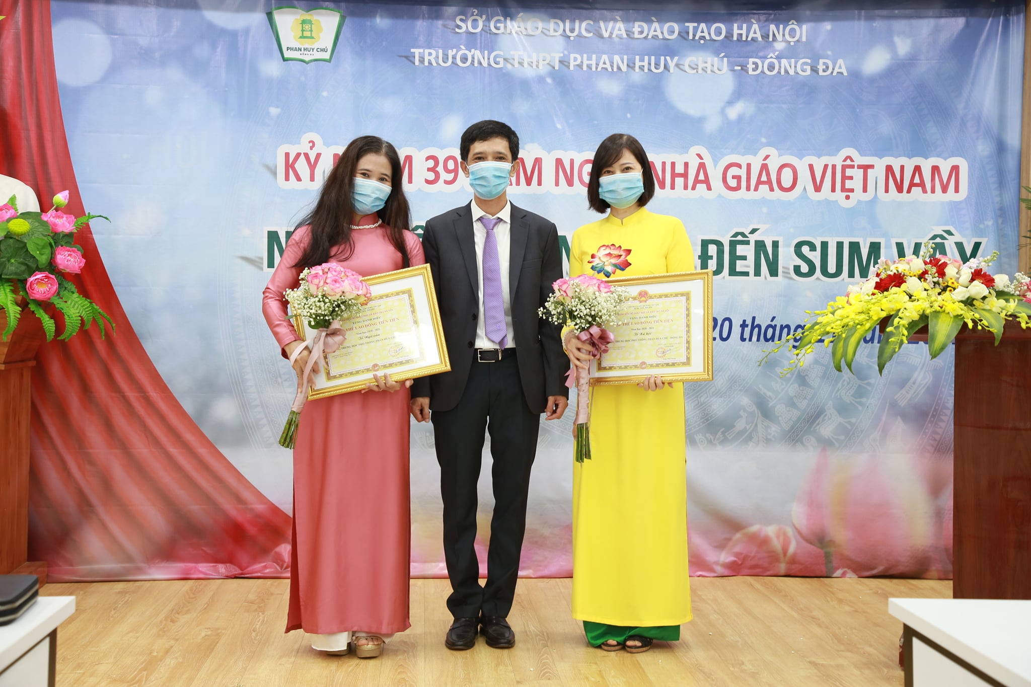 Phần Tôn vinh các cán bộ, giáo viên, nhân viên có thành tích cao 2020-2021 và đầu năm học 2021-2022 là điểm nhấn thật vui, khi lãnh đạo nhà trường trao Chứng nhận và tặng hoa cho các thầy cô giáo đạt danh hiệu Chiến sĩ thi đua cấp cơ sở. Trong dịp trang trọng này, trường THPT Phan Huy Chú – Đống Đa đã được vinh danh ấn tượng khi đại diện cấp trên – ông Lương Hồng Quang – Vụ trưởng Vụ Thi đua khen thưởng (thuộc Văn phòng Chủ tịch nước) trao Cờ thi đua của Chính phủ cho Ban giám hiệu nhà trường. Ngày Nhà giáo Việt Nam đã kết thúc với dư âm trong niềm vui từ những lời chúc và những bông hoa tươi thắm được đại diện cha mẹ học sinh trao tặng các thầy cô giáo trong Ban giám hiệu nhà trường.