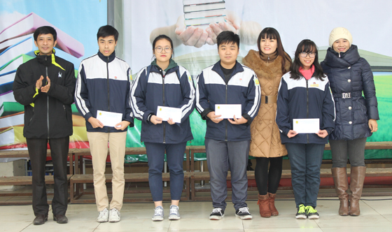 Các bạn nhận được học bổng trị giá 15 triệu đồng của nhà trường trong niềm vui đầu học kỳ mới.