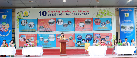 Cô giáo Hiệu trưởng Nguyễn Thị Nhiếp đã chia sẻ chân thành tất cả những thông tin về mô hình nhà trường, những thành tích cũng như nhiều thách thức mới, khi ngôi trường đã được UBND TP công nhận là trường Chất lượng cao.
