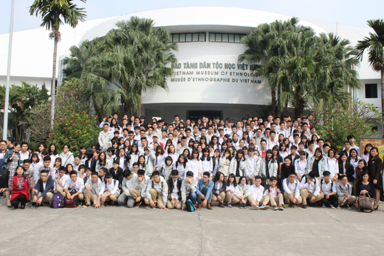 Các cô giáo và học trò trước khi vào thăm quan Bảo tàng Dân tộc học