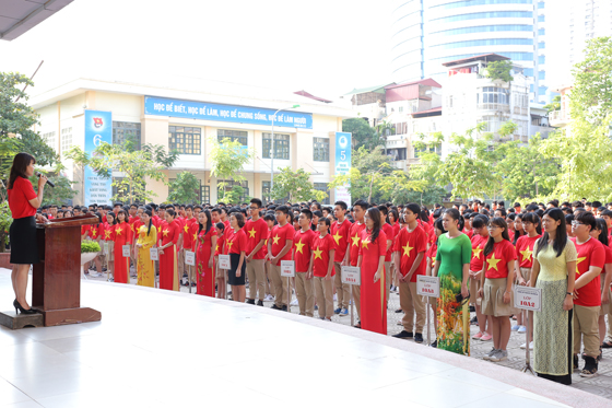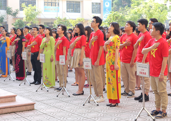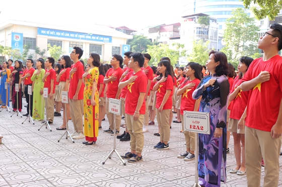 Đặt tay lên trái tim khi hát quốc ca là tư thế trang nghiêm có thể nhìn thấy qua hình ảnh. Song phải có mặt tại sân trường THPT Phan Huy chú – Đống Đa mỗi giờ chào cờ mới cảm thấu đầy đủ tâm thế của mỗi người làm thầy cũng như học sinh ở đây. Gần 1200 thầy và trò nhà trường đã cùng chung niềm xúc động, tự hào khi hát vang bài hát thiêng liêng, hào hùng của Tổ quốc thân yêu.