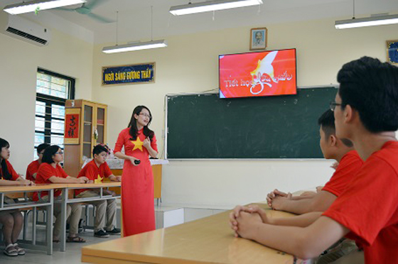 Học sinh mỗi lớp đều được nghe thầy, cô giáo chủ nhiệm giảng về lòng yêu nước qua bài hát thiêng liêng của toàn dân tộc.