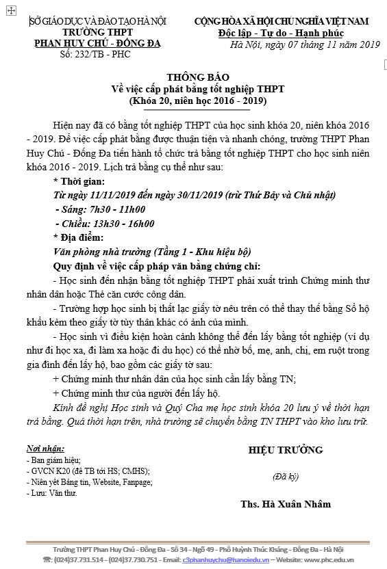 Văn bản thông báoTHÔNG BÁO DÀNH CHO K20: LỊCH CẤP PHÁT BẰNG TỐT NGHIỆP THPT Đã đăng trên 08/11/201905/08/2025 bởi admin admin Học bổng giữa HK 1 năm học 2019 – 2020 CHƯƠNG TRÌNH TRI ÂN: THANH NIÊN VỚI TRUYỀN THỐNG TÔN SƯ TRỌNG ĐẠO