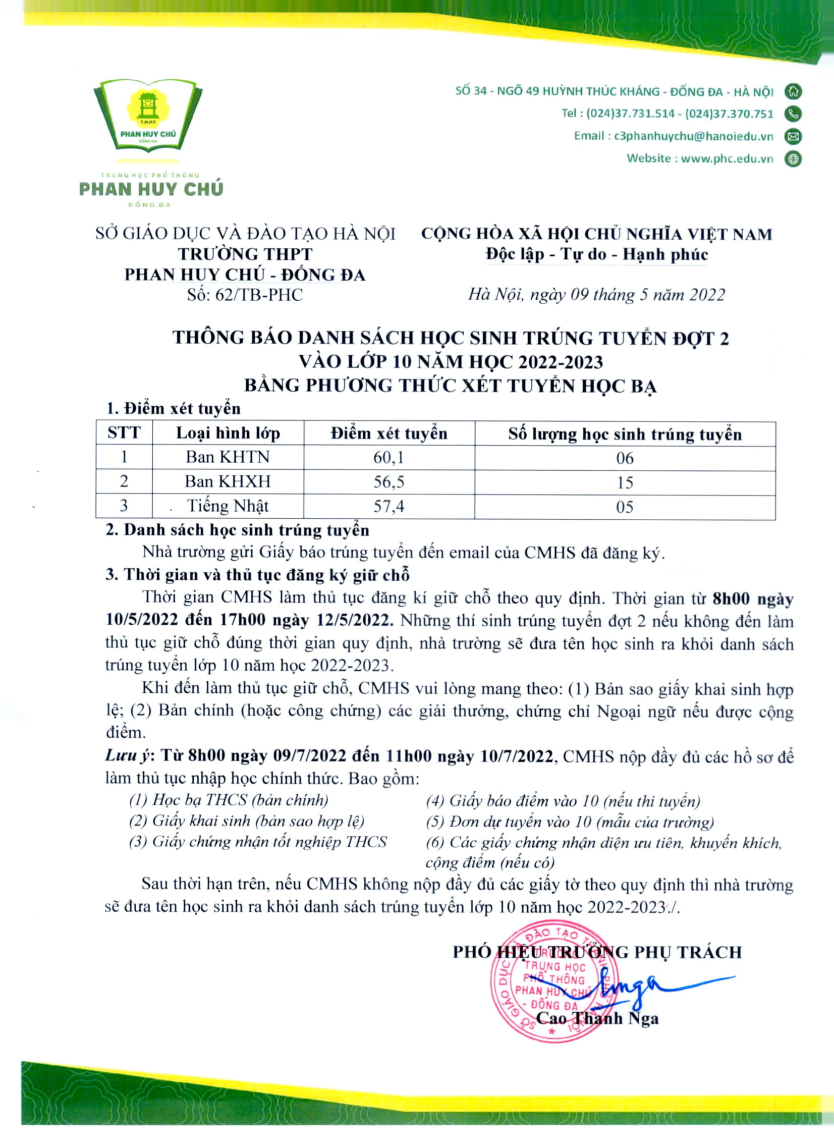 Tuyển sinhTHÔNG BÁO DANH SÁCH HS TRÚNG TUYỂN ĐỢT 2 NĂM HỌC 2022 – 2023 Đã đăng trên 09/05/202205/08/2025 bởi admin admin Tham khảo các tuyến xe đưa đón học sinh năm học 2021 – 2022 THÔNG BÁO DỪNG TUYỂN SINH VÀO LỚP 10 NĂM HỌC 2022 – 2023 BẰNG PHƯƠNG THỨC XÉT TUYỂN HỌC BẠ