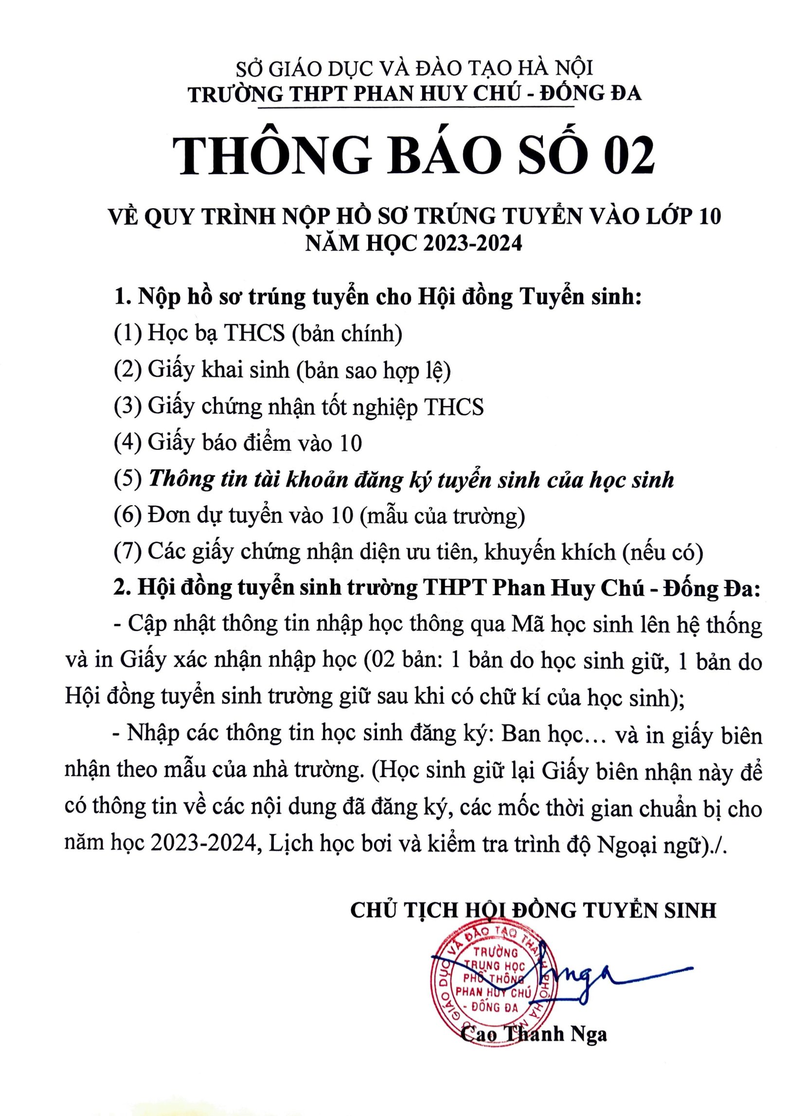Tuyển sinhTHÔNG BÁO ĐIỂM CHUẨN TUYỂN SINH LỚP 10 NĂM HỌC 2023 – 2024 Đã đăng trên 01/07/202305/08/2025 bởi admin admin CHÀO MỪNG CÔ GIÁO PHÓ HIỆU TRƯỞNG DƯƠNG THỊ THU HÀ VỀ TRƯỜNG Thông báo về việc CMHS đến nhập học vào lớp 10 ngày 4/7/2023