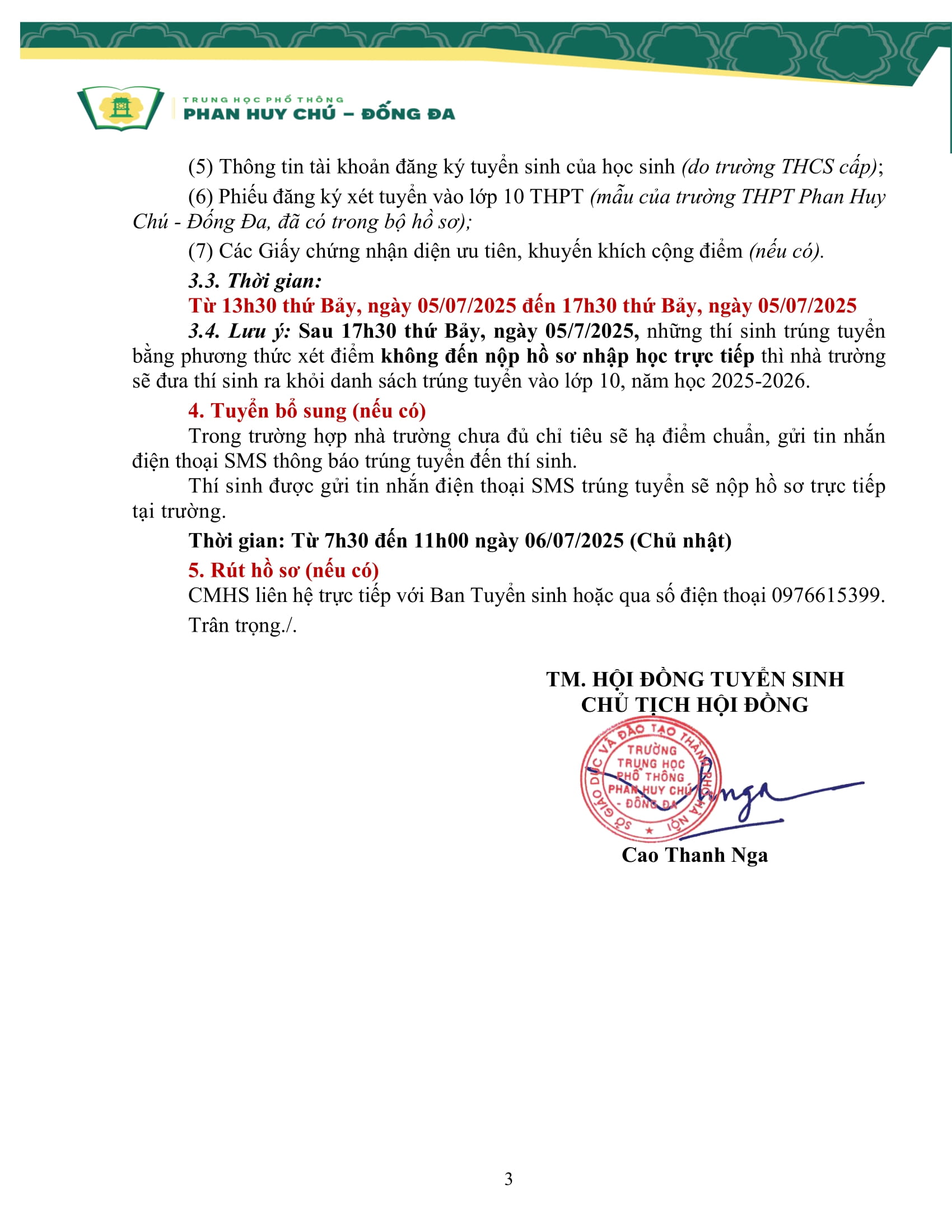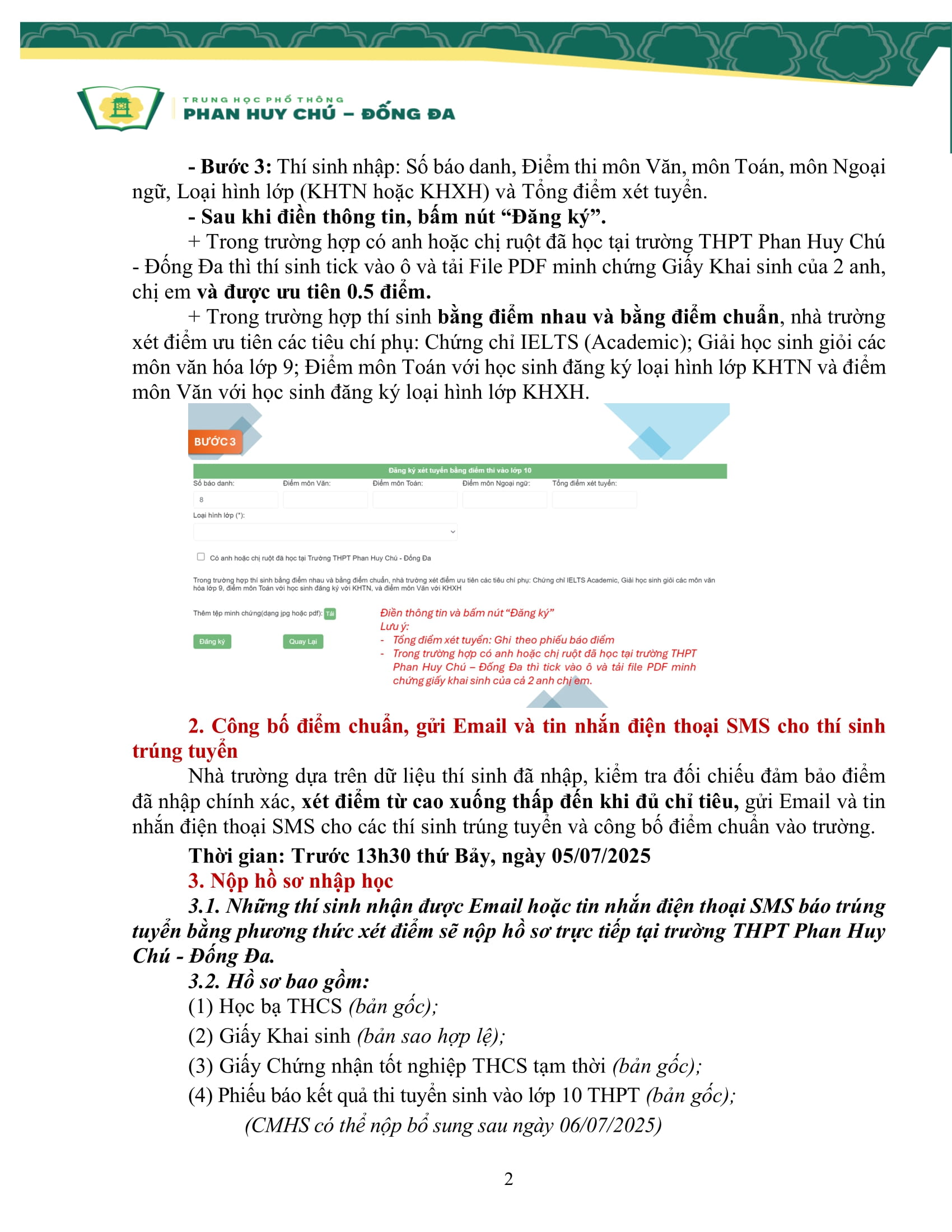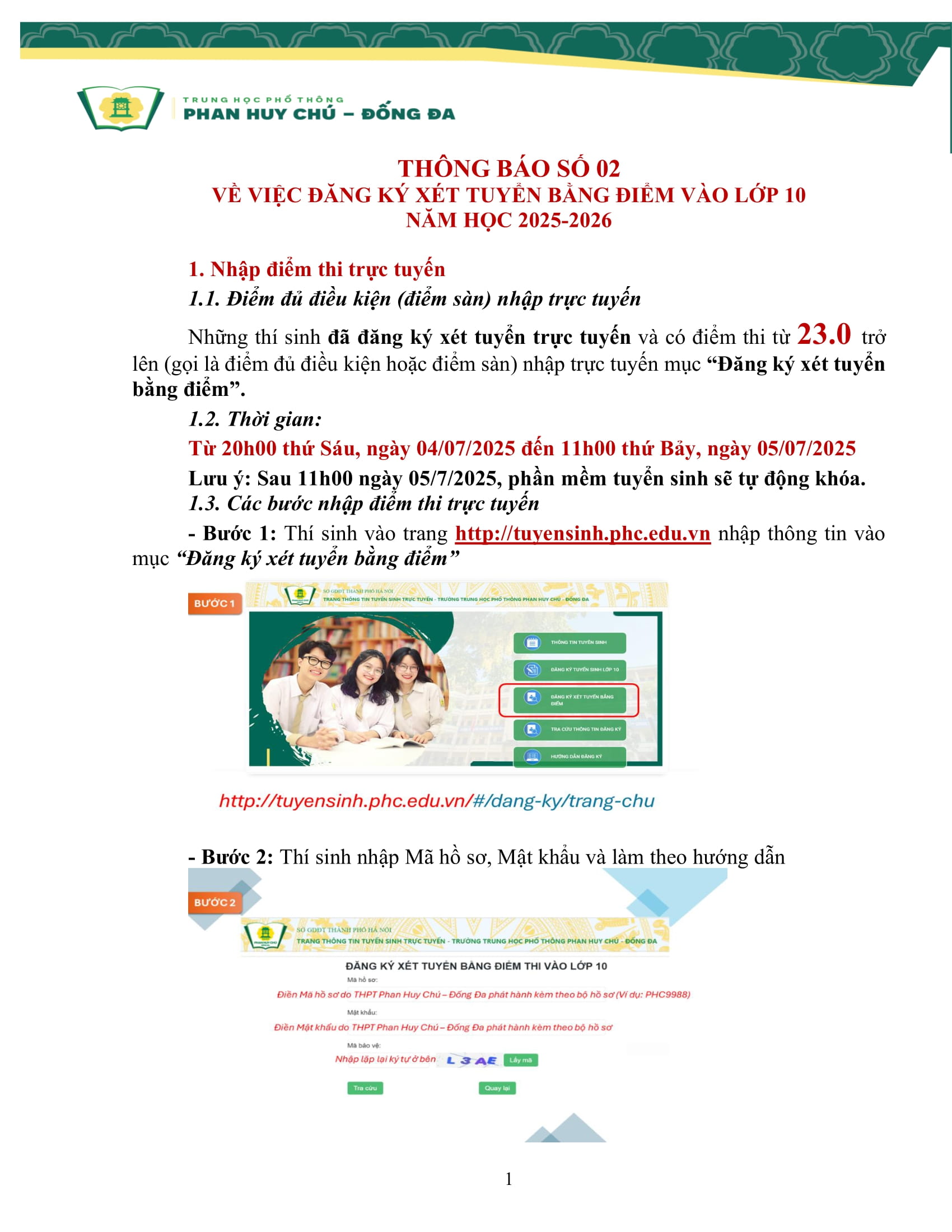 THÔNG BÁO SỐ 02 VỀ VIỆC ĐĂNG KÝ XÉT TUYỂN BẰNG ĐIỂM VÀO LỚP 10 NĂM HỌC 2025-2026