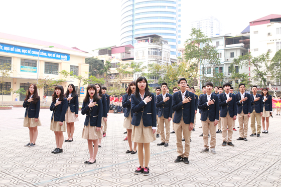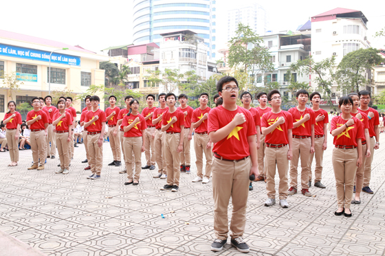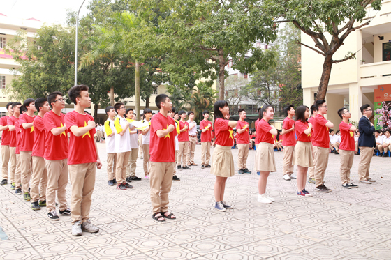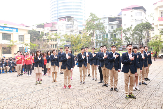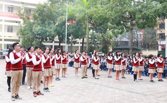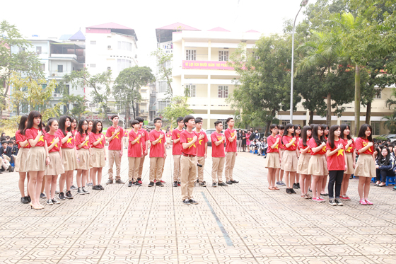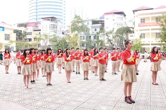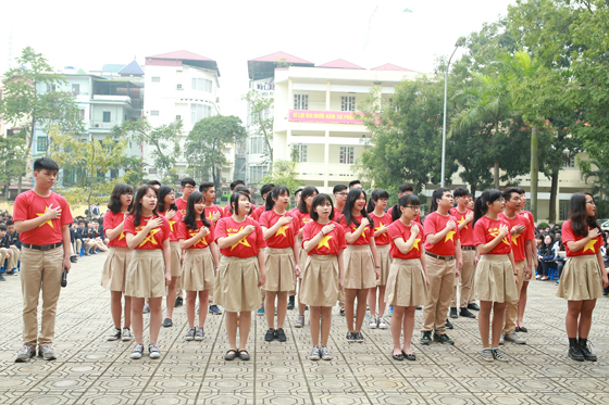 Toàn trường nghiêm túc tham gia cuộc thi hát Quốc ca