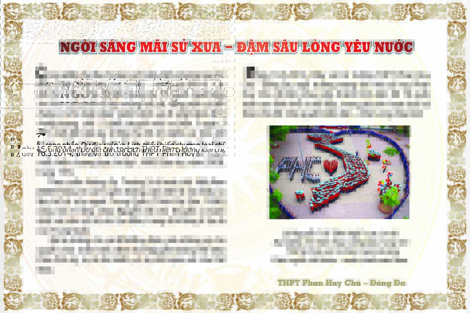 Ngày 16.5.2014, thầy và trò trường THPT Phan Huy Chú – Đống Đa, ngôi trường mang tên nhà sử học Phan Huy Chú, đã bên nhau xếp thành hình bản đồ Tổ Quốc toàn vẹn lãnh thổ và hải đảo, trong giờ sinh hoạt dưới cờ theo chủ đề:  Chủ quyền biển đảo – Khát vọng hòa bình