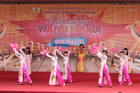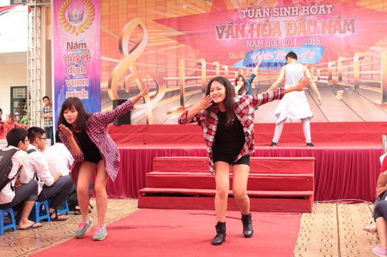 Các nữ sinh 12C yêu kiều trong tiết mục múa