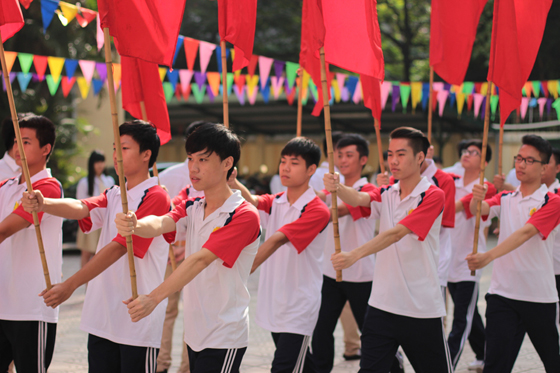 Đội hồng kỳ truyền thống trong ngày khai trường. Các cựu học sinh từng trong đội hồng kỳ nay đã trưởng thành, hẳn còn nhớ mãi