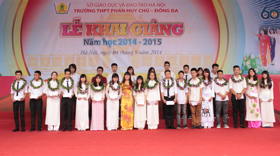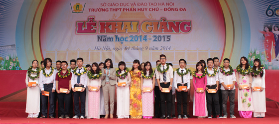 Cô giáo Hiệu trưởng đã trao tặng học bổng cho các học sinh Giỏi đủ tiêu chuẩn nhận học bổng Phan Huy Chú (với các mức 15 triệu đòng và 7,5 triệu đồng)