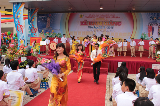 Những bó hoa tươi thắm đã được trao tặng cho các thầy cô đứng đầu nhà trường