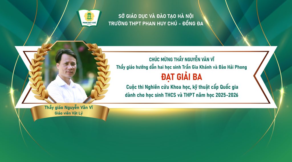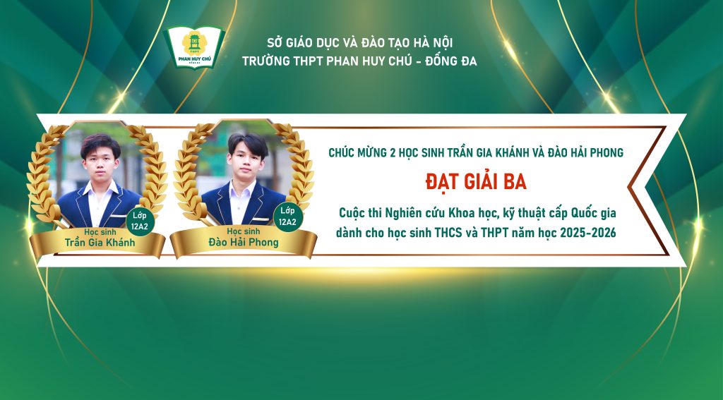 Một lần nữa, xin chúc mừng Trần Gia Khánh, Đào Hải Phong và thầy giáo Nguyễn Văn Vĩ. Chúc hai bạn luôn giữ vững đam mê, bản lĩnh và khát vọng vươn cao, tiếp tục mang về nhiều thành tích rực rỡ, góp phần làm dày thêm truyền thống đáng tự hào của mái trường Phan Huy Chú – Đống Đa thân yêu!