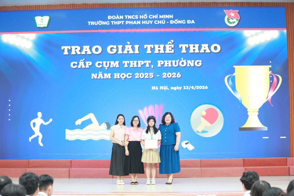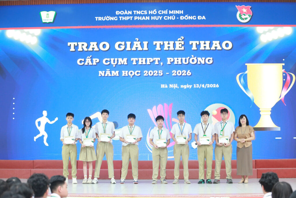 Sau khi học sinh toàn trường vừa hoàn thành kỳ thi Khảo sát định kỳ cần tập trung và nghiêm túc, thầy và trò Trường THPT Phan Huy Chú – Đống Đa bước vào những ngày chuẩn bị cho kỳ nghỉ Lễ với tâm thế phấn khởi, nhẹ nhàng. Nhìn lại chặng đường trung tuần tháng 4/2026 vừa qua, nhà trường đã long trọng tổ chức vinh danh những học sinh tiêu biểu đạt thành tích xuất sắc trong các hoạt động thể thao và học tập, góp phần lan tỏa tinh thần rèn luyện toàn diện trong học sinh.