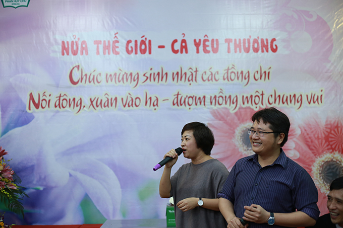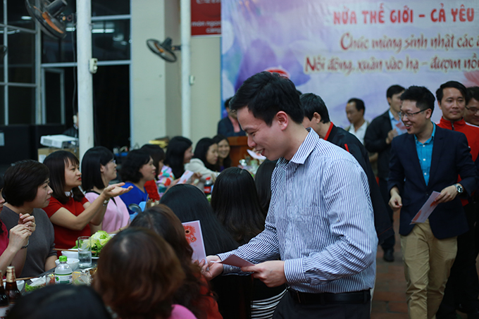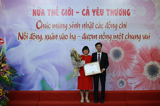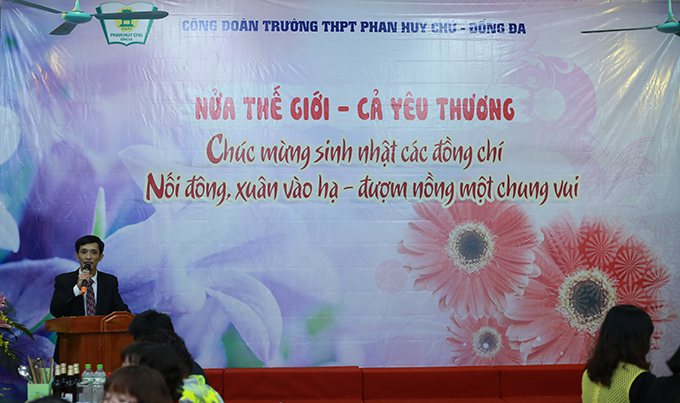 Thầy giáo Hà Văn Thọ – Chủ tịch Công đoàn nhà trường đã chúc mừng chị em và trang trọng đọc tên cùng lời chúc mừng từng các đồng chí có sinh nhật được tổ chức trong dịp này.