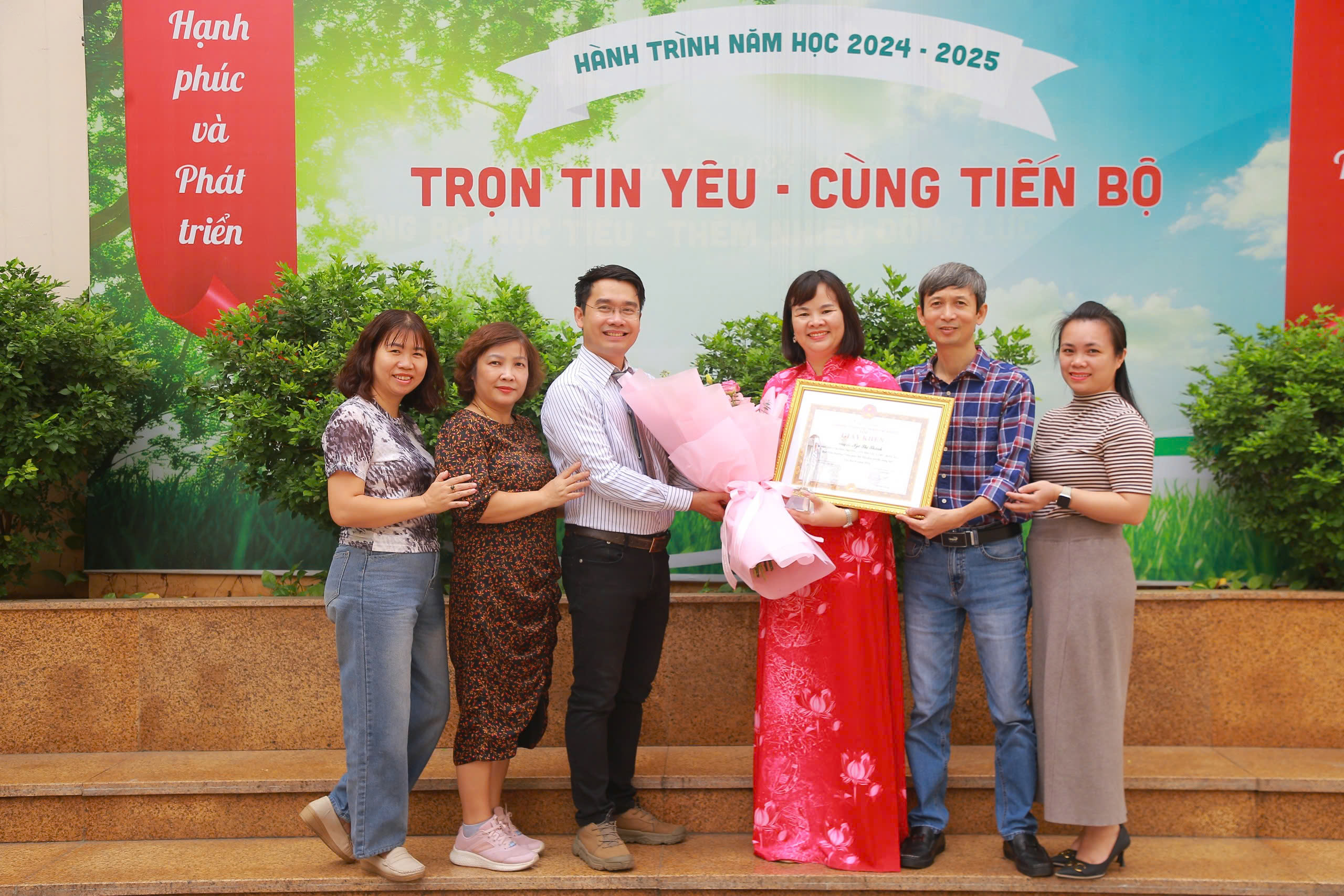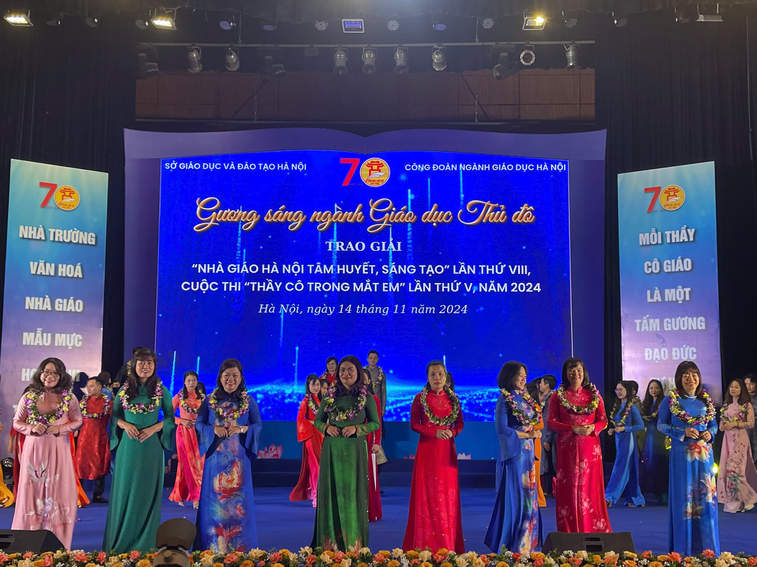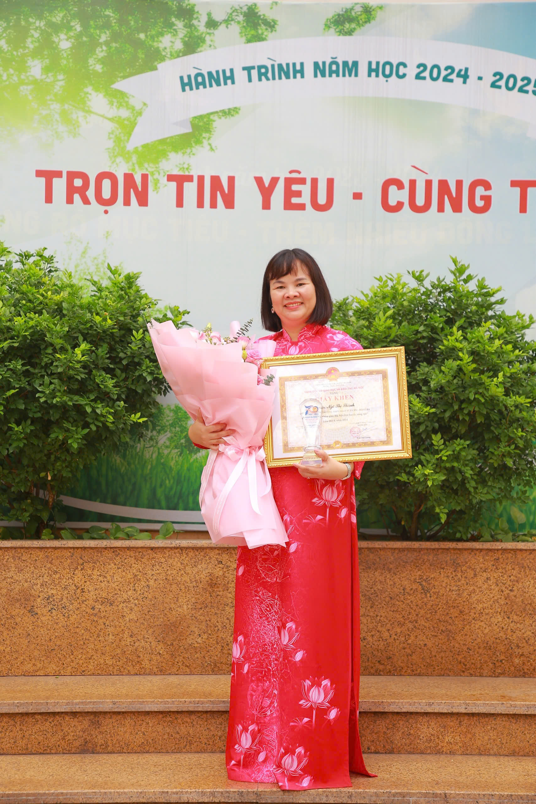 Cô giáo Ngô Thị Thành được vinh danh trong buổi Lễ và được Giám đốc Sở GD&ĐT Hà Nội trao tặng Giấy khen dành cho Nhà giáo Hà Nội tâm huyết, sáng tạo.