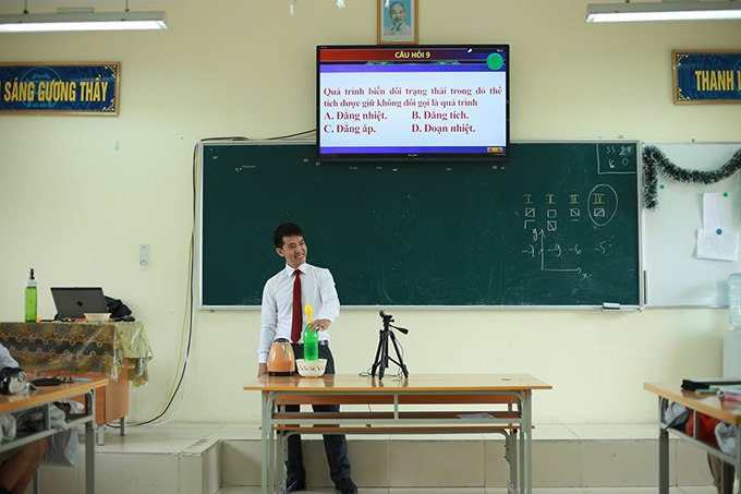 Thầy giáo Dương Thế Hiển trong giờ thi dạy học sáng tạo